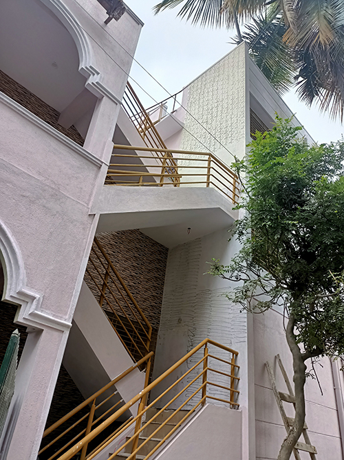 Srusti Constructions designed and executed a well-integrated G+2 structure that combined functional planning with refined aesthetics. Smart space utilisation ensured maximum usability within the 3,600 sq.ft footprint, while structural reinforcements and quality construction practices were incorporated to ensure long-term stability, safety, and comfort. Design elements were carefully planned to enhance daylight penetration and cross ventilation across all floors.